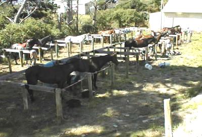 | Horses in the "stables" behind the old Castlepoint Station Woolshed | ![]() |